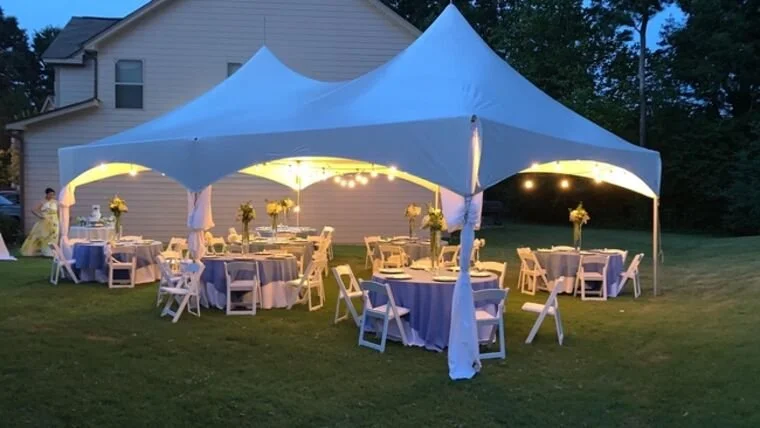 Let’s give your event some shade or cover with some high peak tents from Lustré Event Rentals!